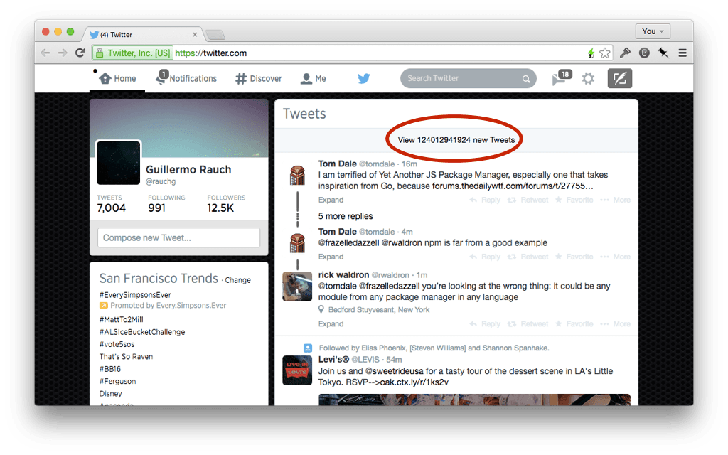 Another way of breaking navigation is by ignoring scrolling memory. Once again, pages that don't rely on JS and manual history management most likely won't have an issue with this. But dynamic ones usually do. I tested the two most popular JavaScript-driven newsfeeds of the web: Twitter and Facebook. Both exhibited scrolling amnesia.