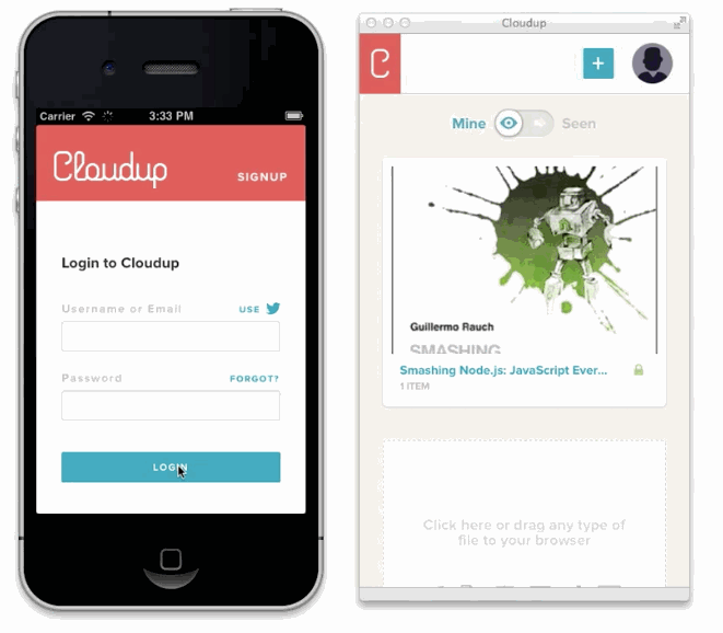 We can capture the user's intent to upload through a variety of means: drag and drop, paste, file picker. Then, thanks to new HTML5 APIs we can display content as if it had been uploaded. An example of this in action is in the work we did with Cloudup uploads. Notice how the thumbnail is generated and rendered immediately: