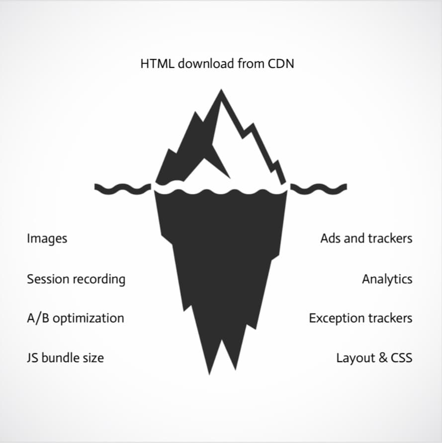 The time it takes to download the HTML from the edge is just the tip of an entire iceberg of complexity that represents a challenge to performance.